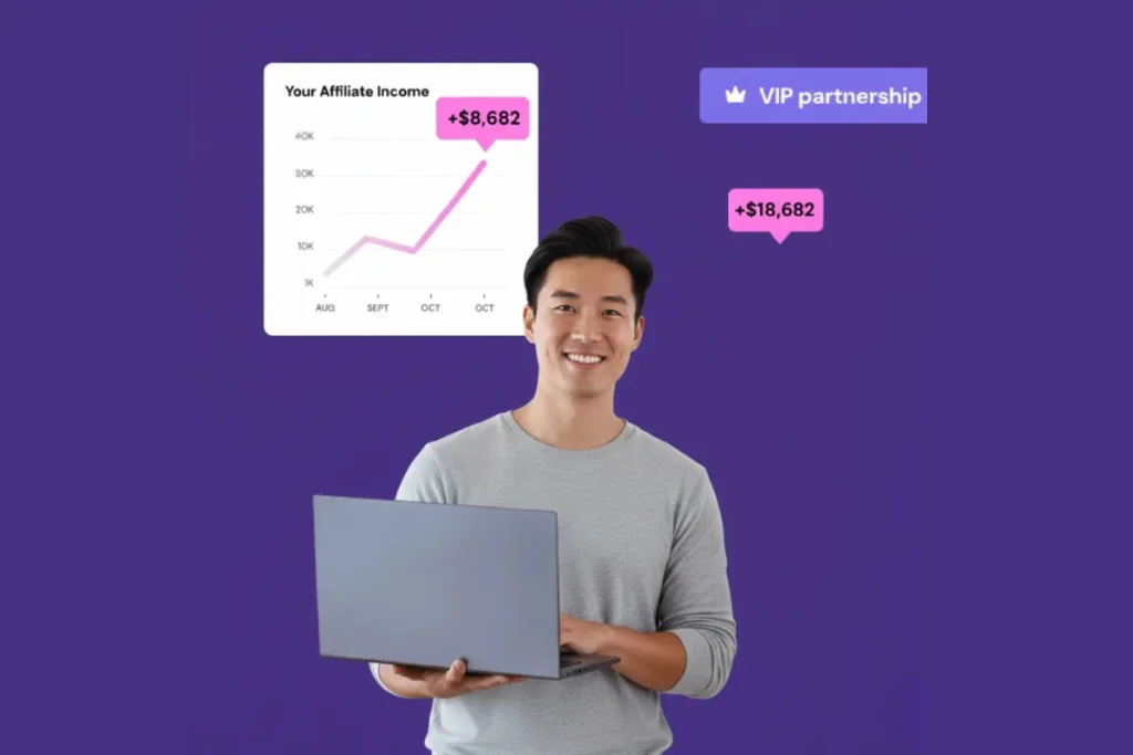 Access your dashboard, grab your link, and track every click and sale.